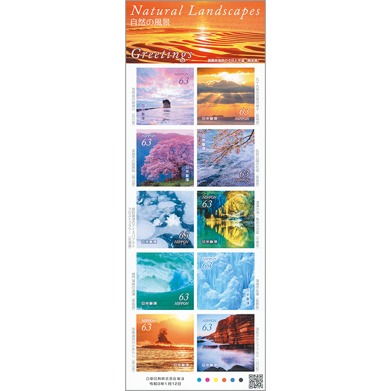 21年グリーティング「自然の風景」63円(シール式)10種シート