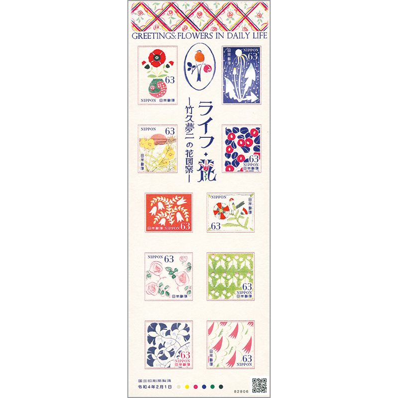 22年グリーティング「ライフ・花」63円(シール式)10種シート