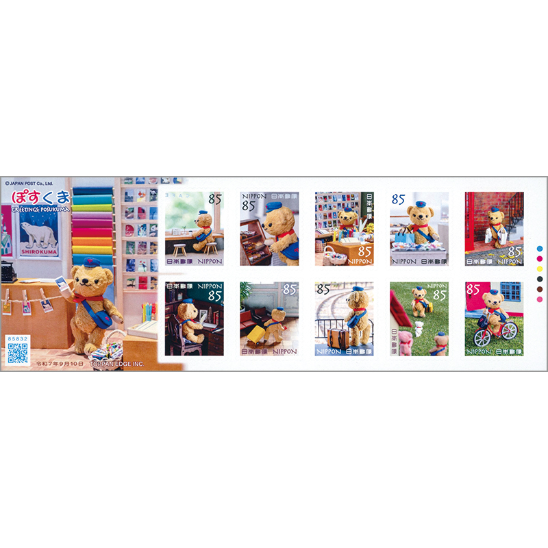 25年グリーティング「ぽすくま」85円(シール式)10種シート