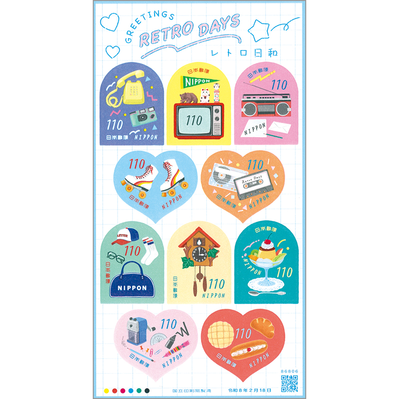 26年グリーティング「レトロ日和」110円(シール式)10種シート