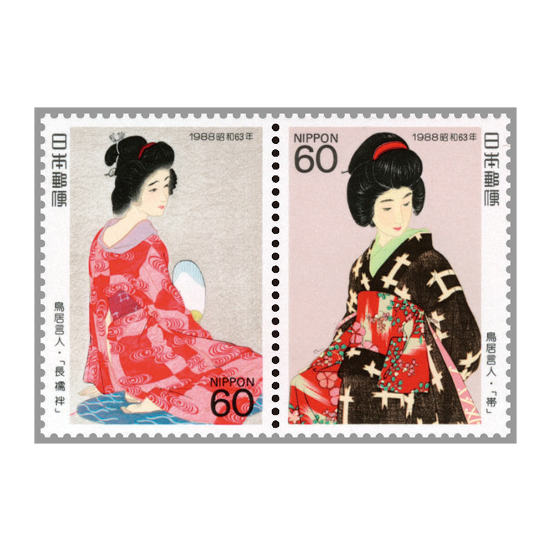 88年切手趣味週間 鳥居言人「長襦袢」「帯」2種連刷 を買うならスタマガネット