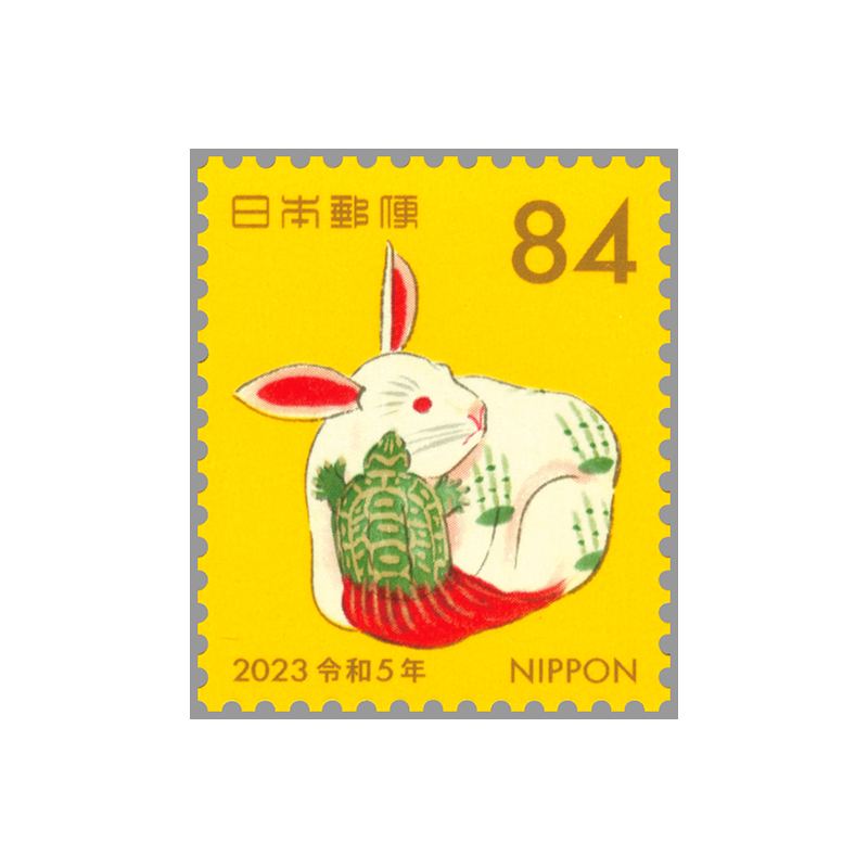 令和5年用年賀「川崎巨泉画・博多張子 兎と亀」84円