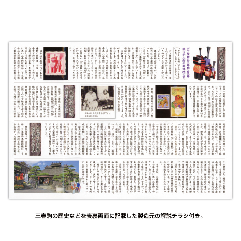 高柴デコ屋敷発祥の「三春駒」は、日本の年賀切手に十二支の郷土玩具としては初めて採用された民芸品。