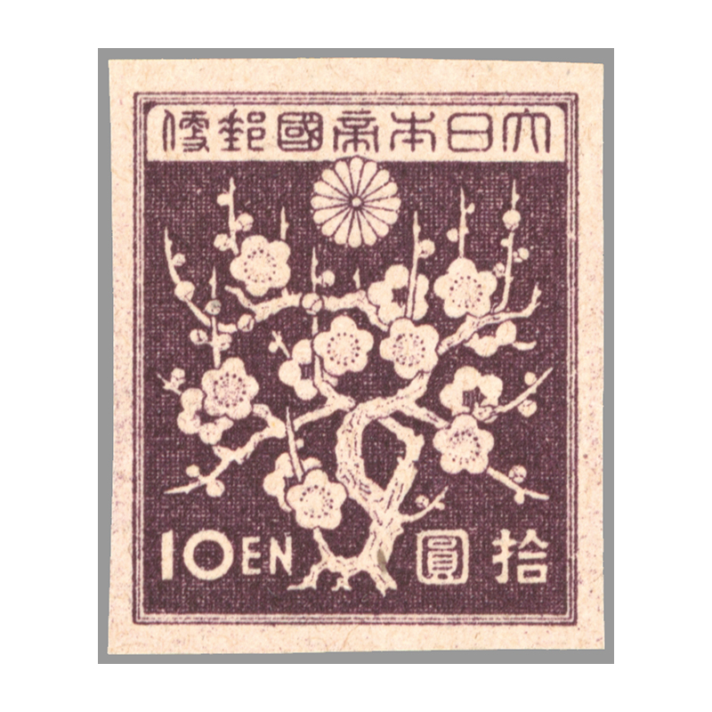 第3次昭和切手は、戦局の悪化とともに物資困窮の最悪の状況下で、簡素な平版印刷で製造された。目打と糊がない3銭から10円までの10種を指す。用紙は白紙・灰白紙(灰色がかった白紙)・粗紙(異物の混入が多い茶色がかった紙)の3種類があり、雲型の「昭和すかし」が入っている。