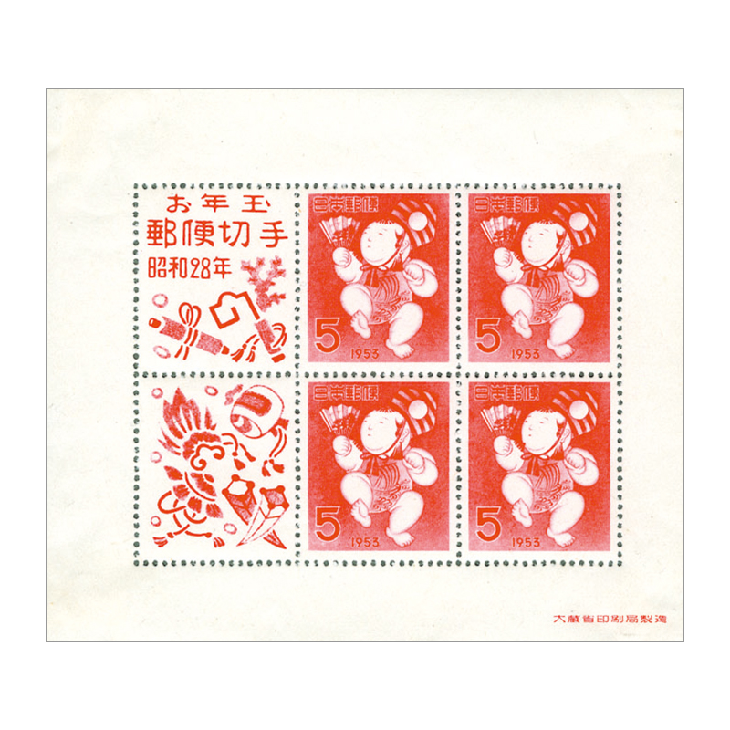 昭和28年用年賀「御所人形」お年玉小型シート(訳有り品)