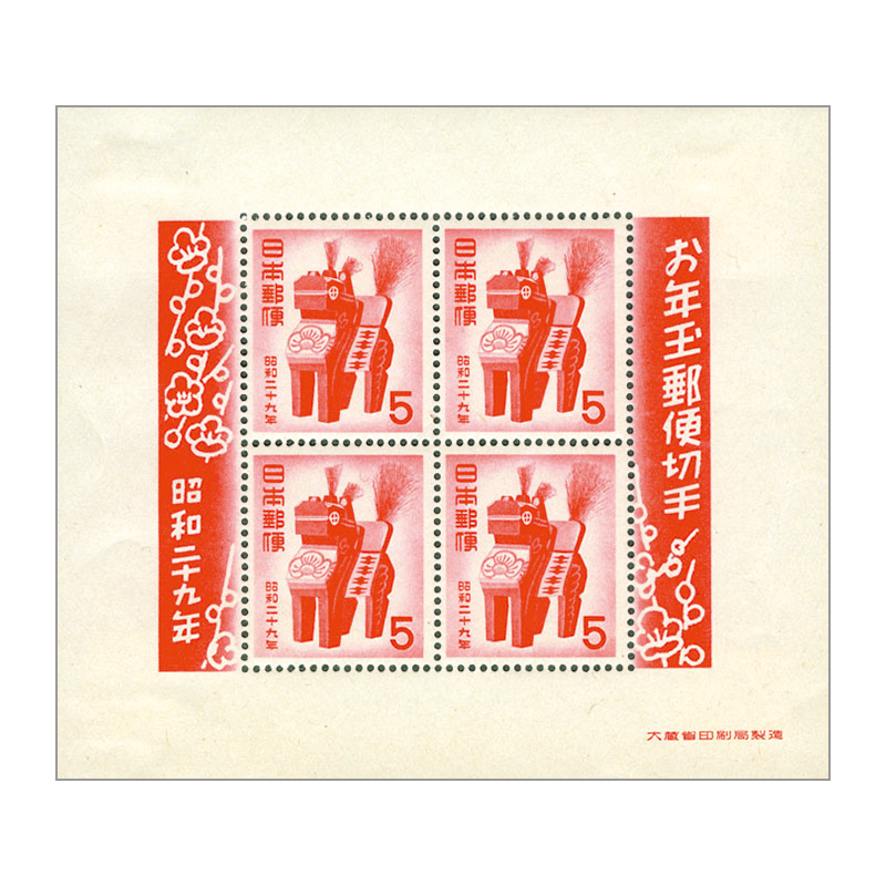昭和29年用年賀「三春駒」お年玉小型シート(訳有り品)