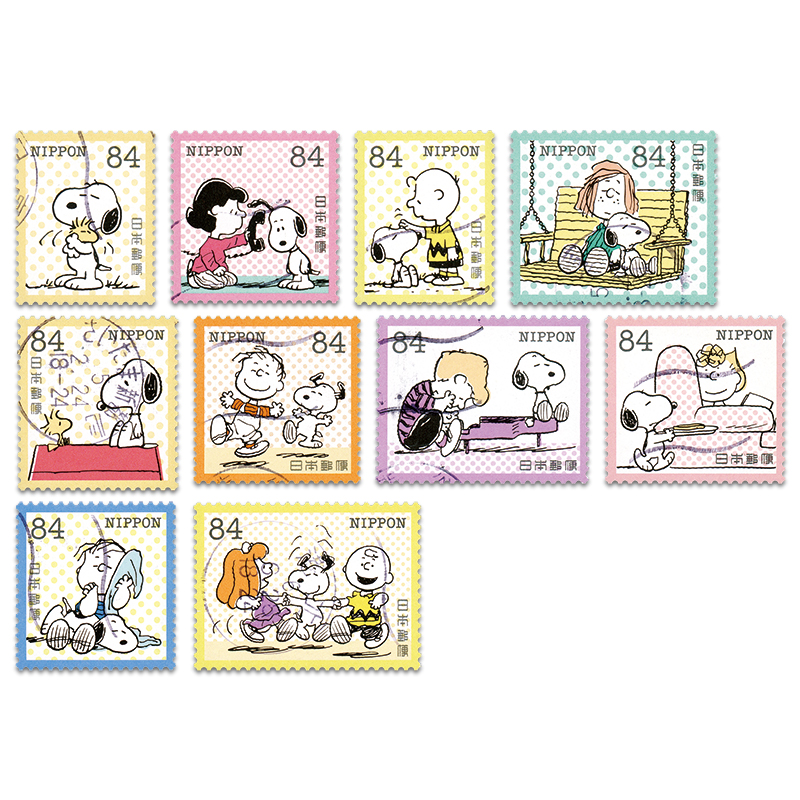 <使用済>23年グリーティング「スヌーピーとピーナッツのなかまたち」84円10種完