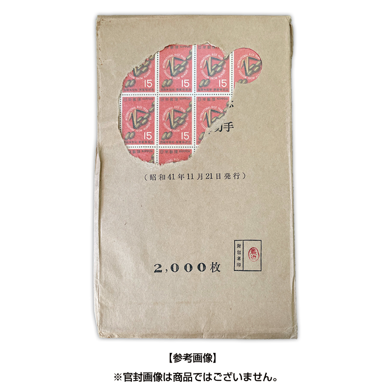 【官封切りシート】切手製造所から郵政に納品された状態の切手で封緘された100枚の束から取り出したシート。