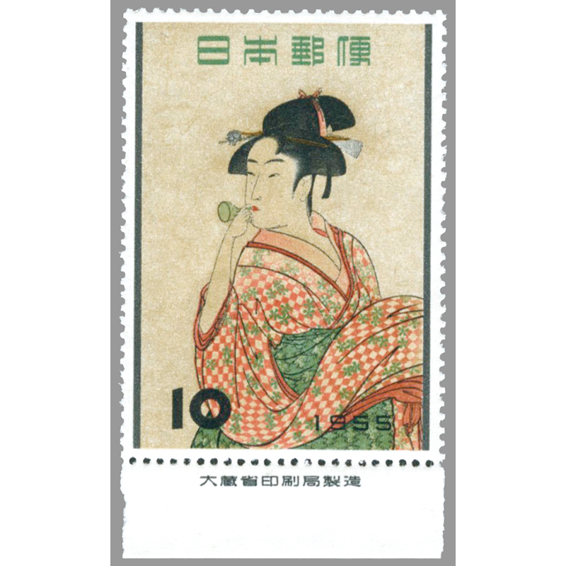 55年切手趣味週間 喜多川歌麿「ビードロを吹く娘」銘版付き を買うならスタマガネット
