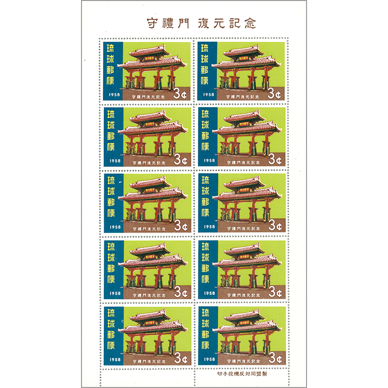 <沖縄>守礼門復元サンプルシート(官封切り)