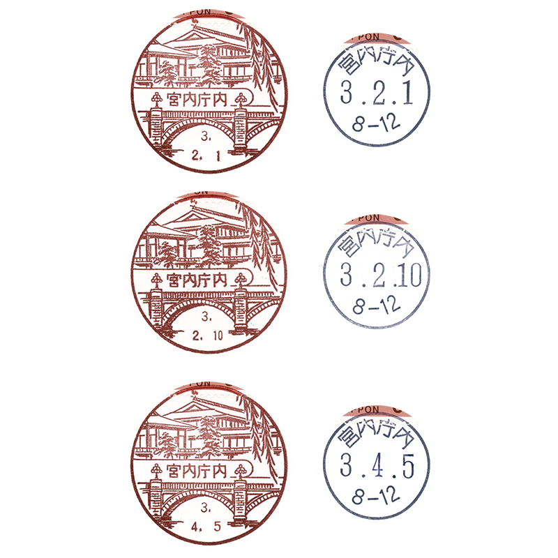 令和3年<「3.2.1」「3.2.10」「3.4.5」並び数字>宮内庁内局(風景印&和文印)押印台紙3点セット