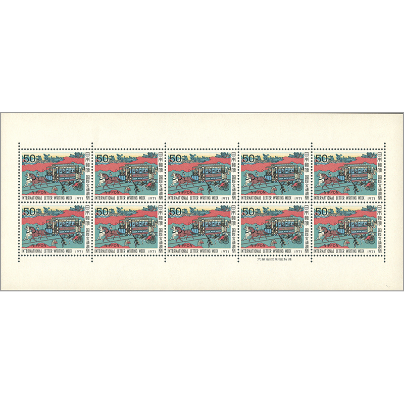 71年国際文通週間「東京鉄道馬車図」【官封切り】10面シート