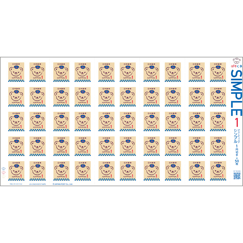 21年グリーティング「シンプル(ぽすくま)」1円(シール式)50面シート