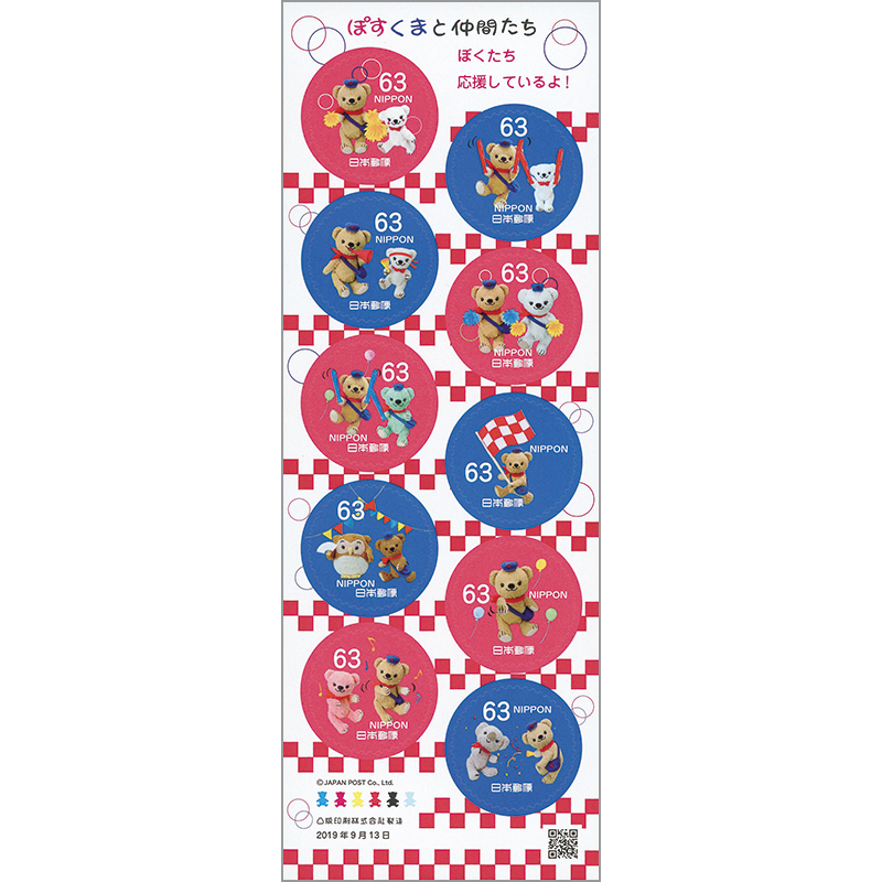 19年グリーティング「ぽすくまと仲間たち」63円(シール式)10種シート