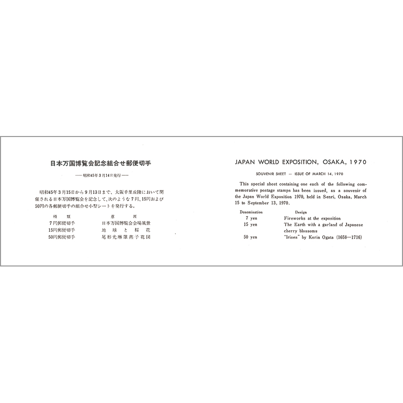 日本万国博覧会記念1次【官封切り】小型シート(タトウ付き)