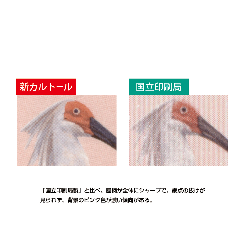 「国立印刷局製」と比べ、図柄が全体にシャープで、網点の抜けが見られず、背景のピンク色が濃い傾向がある。