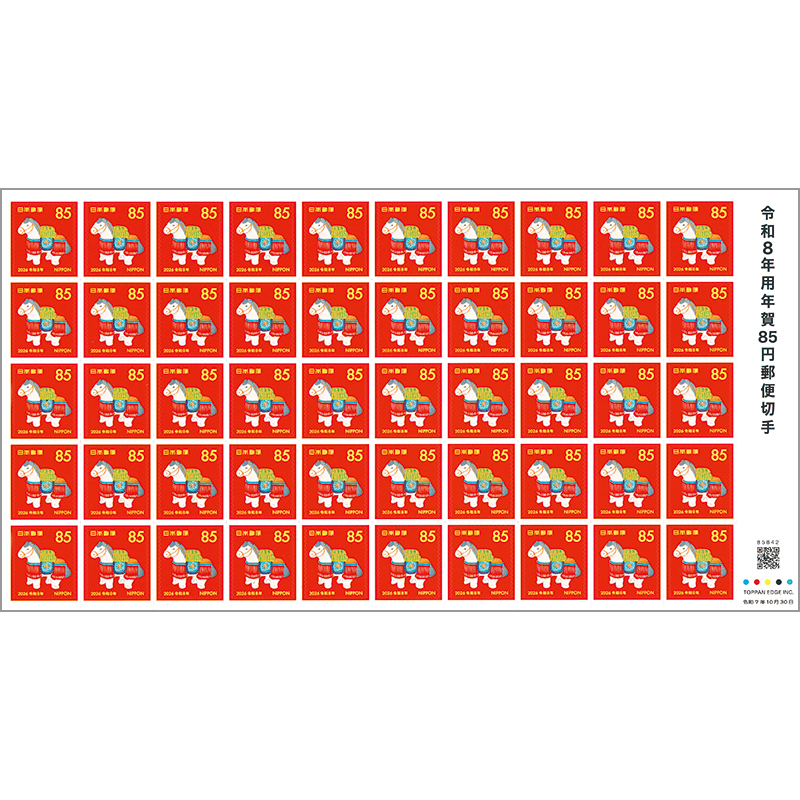 令和8年用年賀「川崎巨泉画・尾張一の宮真清田神社古型俵馬」85円(シール式)」50面シート