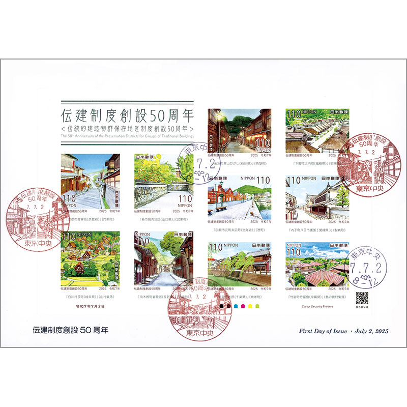 伝建制度創設50周年(伝統的建造物群保存地区制度創設50周年) 全貼り初日カバー