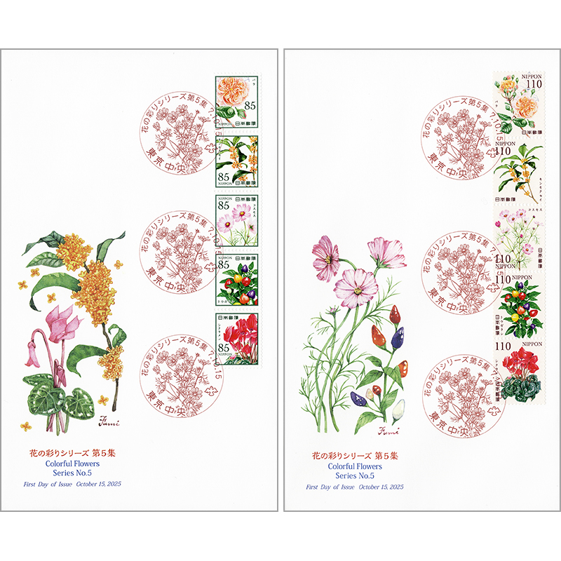 花の彩りシリーズ第5集 <押印機> 初日カバー 2枚セット