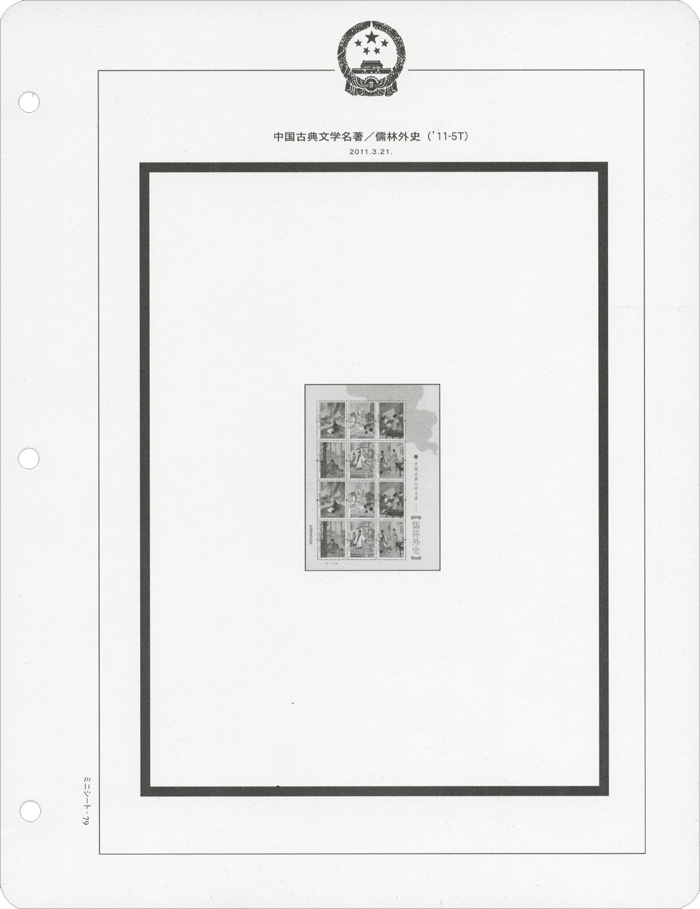ヨコ216×タテ279ミリ。中華人民共和国切手ミニシート2011年発行切手を採録します。10枚。