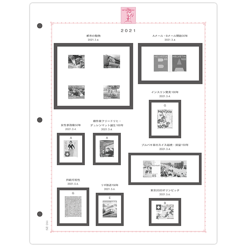 ヨコ216×タテ279ミリ。スイス切手2021-22年発行分収納用、14枚。