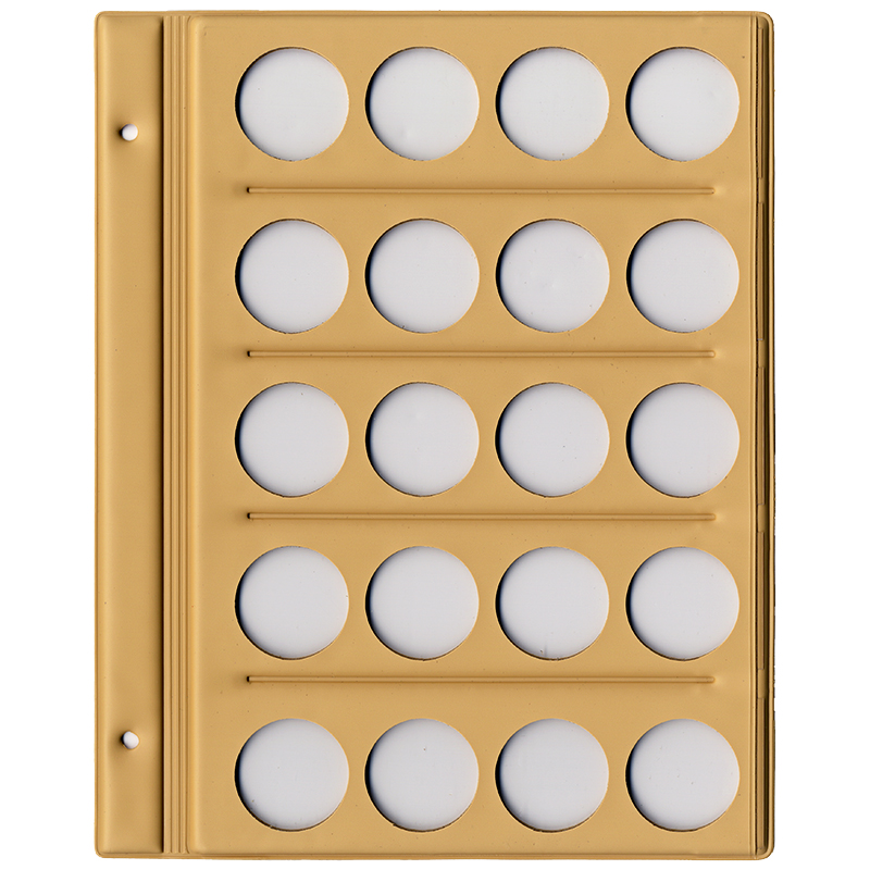 お手元のコインを手軽に整理できる無地の台紙です。直径33ミリの大きさの穴がヨコ4列タテ5段で20個並んでいます。テージー製。