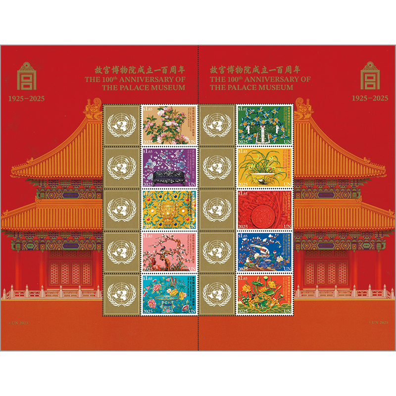 明・清皇帝の王室宮殿(紫禁城)を開放して1925年10月10日に設立された北京の故宮博物院。約180万点の収蔵品のなかから「花」をモチーフにした美術品を描く10種に国連章のタブ。