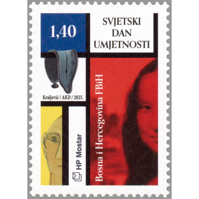 「モナ・リザ」、ピカソ「アビニヨンの娘たち」、ダリ「柔らかい時計」、モンドリアン「赤、青、黄のコンポジション」のモチーフ。