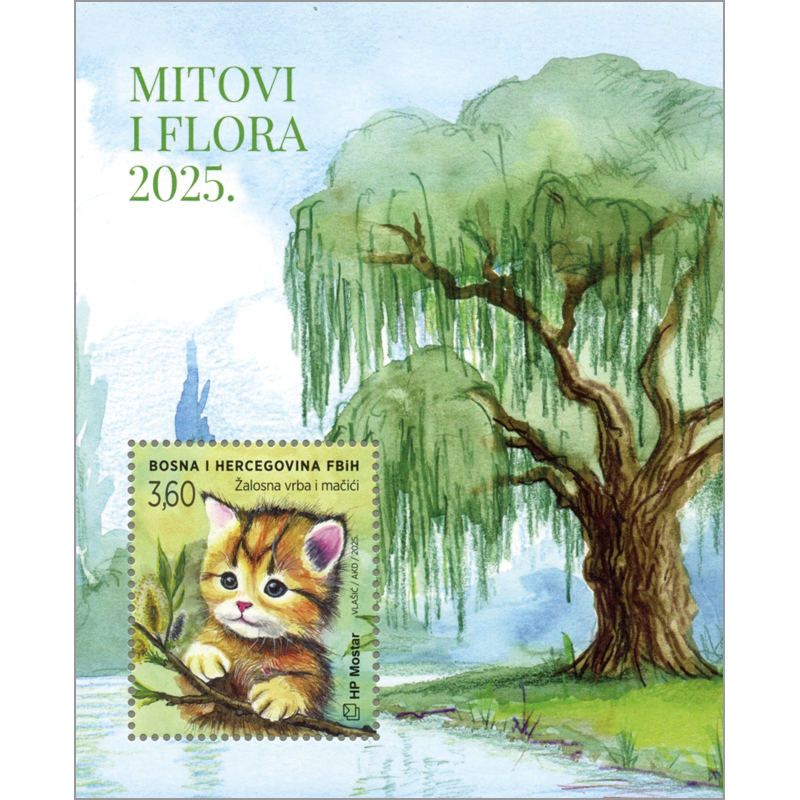 中国からシルクロードを経由してヨーロッパに伝わったヤナギ科の植物。切手部分の猫は川岸の柳が溺れている子猫のために長い枝を水面に下ろして助けたという中国の伝説に由来。