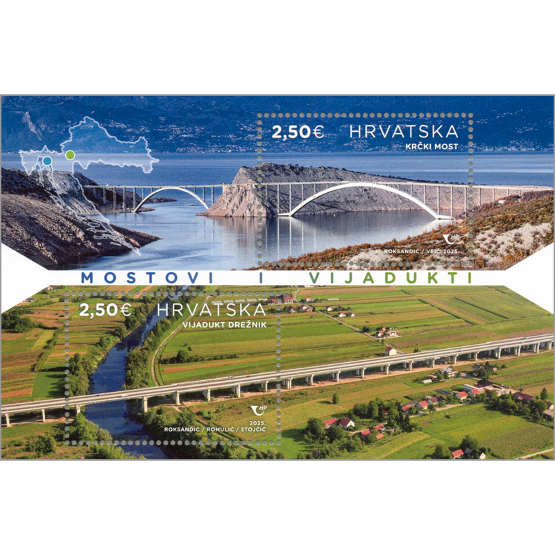アドリア海のクルク島と本土を結ぶ鉄筋コンクリートのクルク橋(全長1430m)と、首都ザグレブとアドリア海沿岸を結ぶ高速道路沿いにあるクロアチア最長(全長2485m)のドルジェニク高架橋。