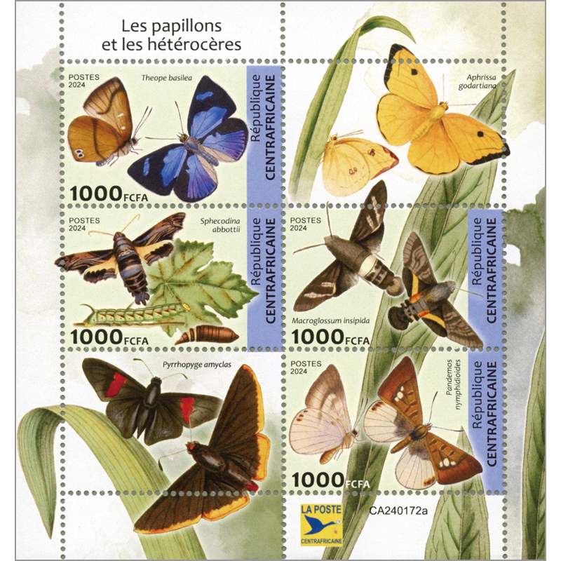 シジミタテハ科(左上右下2種)、スズメガ科(中段2種)。