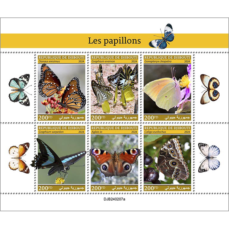 ヘイタイマダラ、エベモンタイマイ、クレオパトラヤマキチョウ、アオスジアゲハ、クジャクチョウ、オオフクロウチョウ。