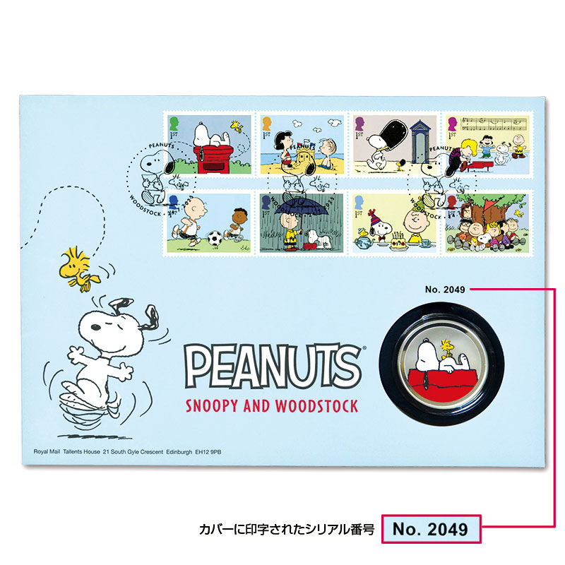 消印はウッドストック局。メダルのデザインはスヌーピーとウッドストック。