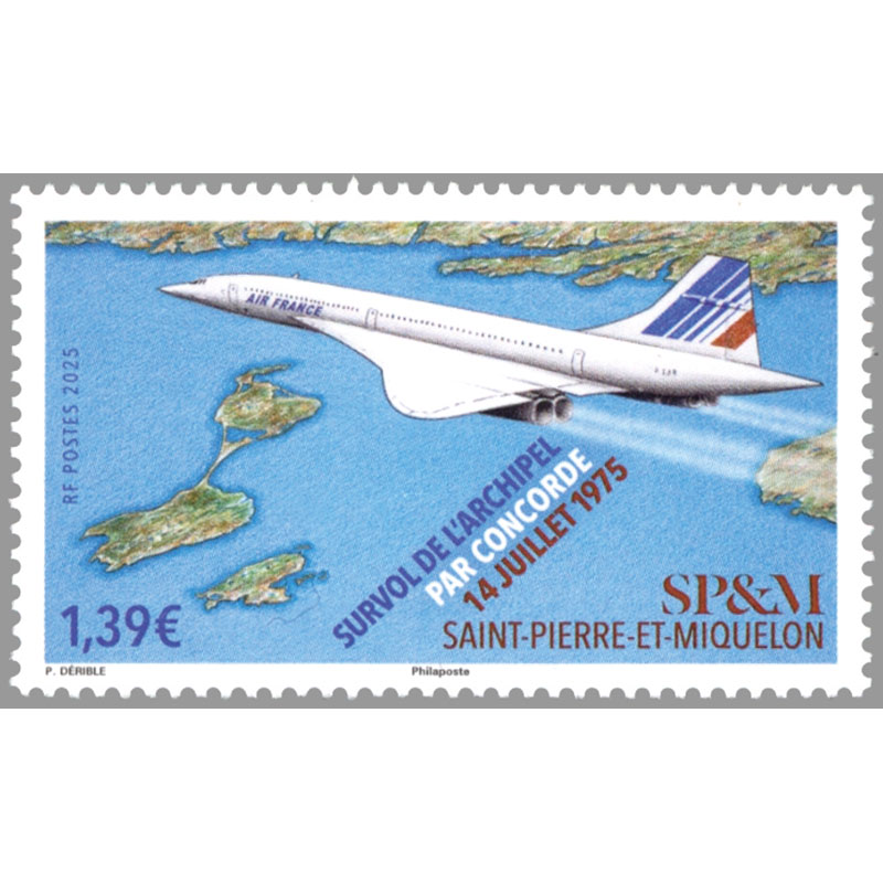 1975年の試験飛行。カナダのセントローレンス湾に浮かぶサンピエール島・ミクロン島上空をエールフランスのコンコルドF-BVFA機。
