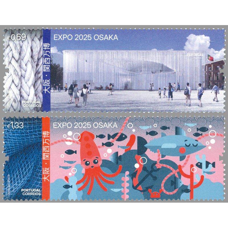 リサイクル漁網などの素材を使い、外壁には約一万本のロープを吊り下げて海の波と船をイメージしたポルトガルパビリオン。
