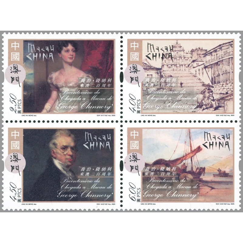 画家ジョージ・チネリーのマカオ到着200年田型連刷+小型シート