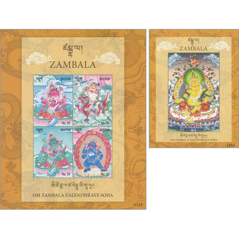 インド神話に起源を持つチベット仏教の財神。異なる祝福をもたらす5つの姿(赤、白、緑、青、黄)で現れるとされる。左手に宝石を吐き出すマングースを抱え、右手にシトロン(柑橘)や宝物を持つ姿で表される。