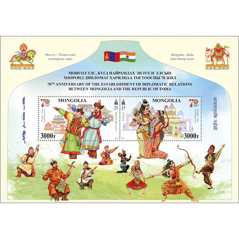 モンゴル・インド修好70年小型シート