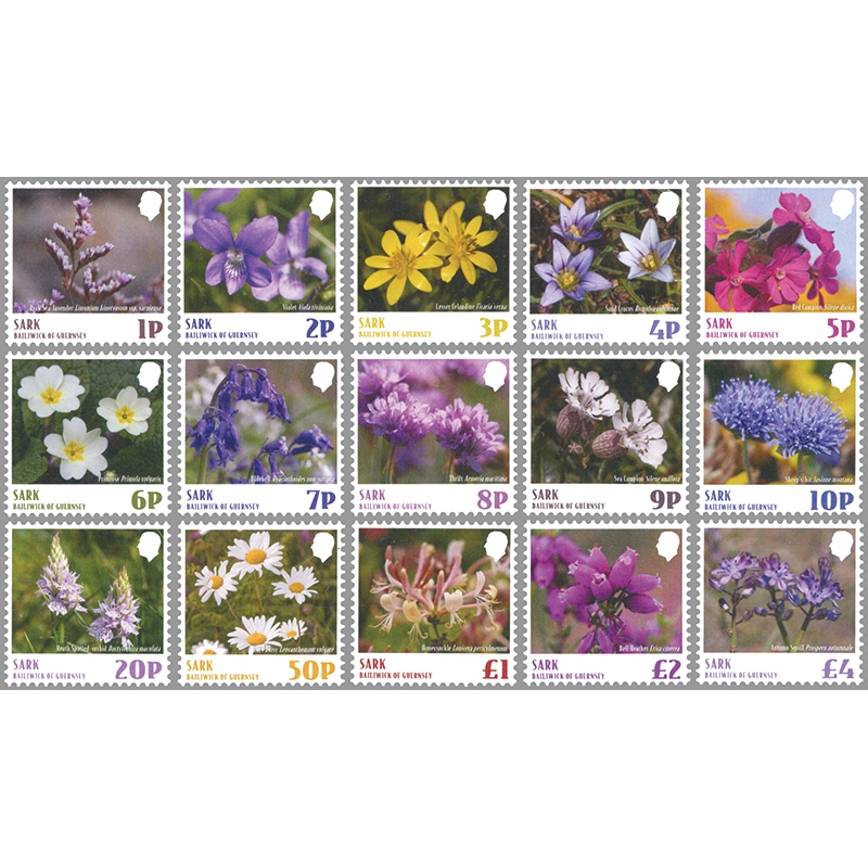 英王室属領ガーンジーの管轄下にあるチャンネル諸島の島、サーク島から発行された島の草花を描く切手。