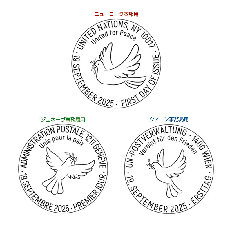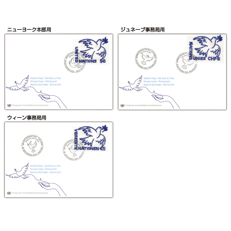 2025年9月21日の「国際平和デ−」を記念した、世界平和への積極的な取り組みを目指す共同プロジェクト。国連およびオーストリア、オーランド、アルメニア、バルバドス、キプロス、フェロー諸島、グリーンランド、リヒテンシュタイン、ルクセンブルク、スイスの11郵政が、同図案の刺繡切手を共同発行。