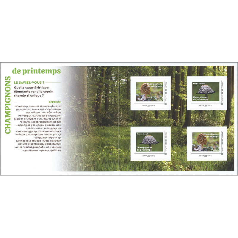 キノコが自生する森林の景色を背景に2種2組ずつを収める2つ折りシート。