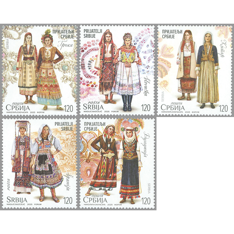 友好関係にある国とセルビア各地の女性の民族衣装。