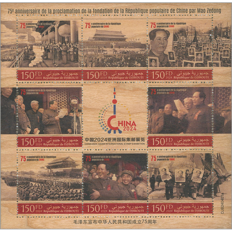 木製切手/毛沢東の建国宣言75年(セルフ糊)8種シート