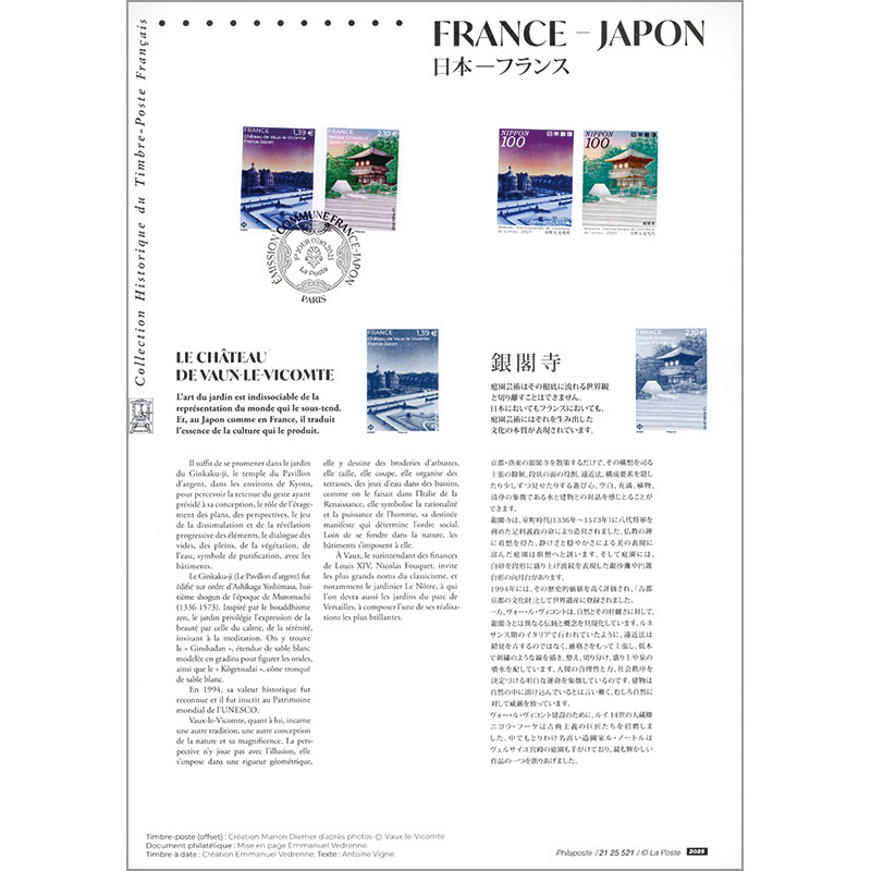 ヴォー・ル・ヴィコント城、銀閣寺。日本(「国際文通週間」)との共同発行・共通図案。