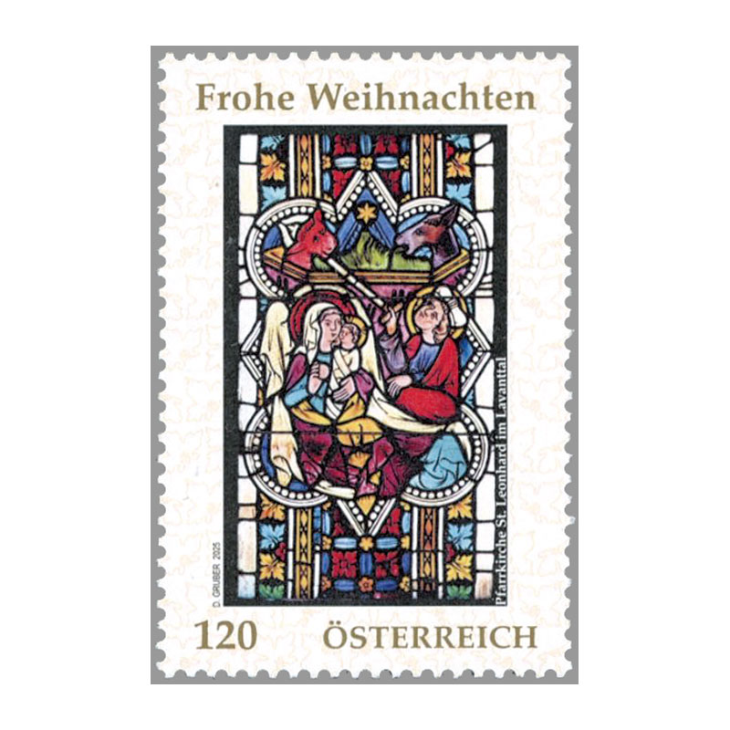 オーストリア南部ケルンテン州バート・ザンクト・レオンハルト・イム・ラヴァントタールの聖レオンハルト教会の降誕のステンドグラス。