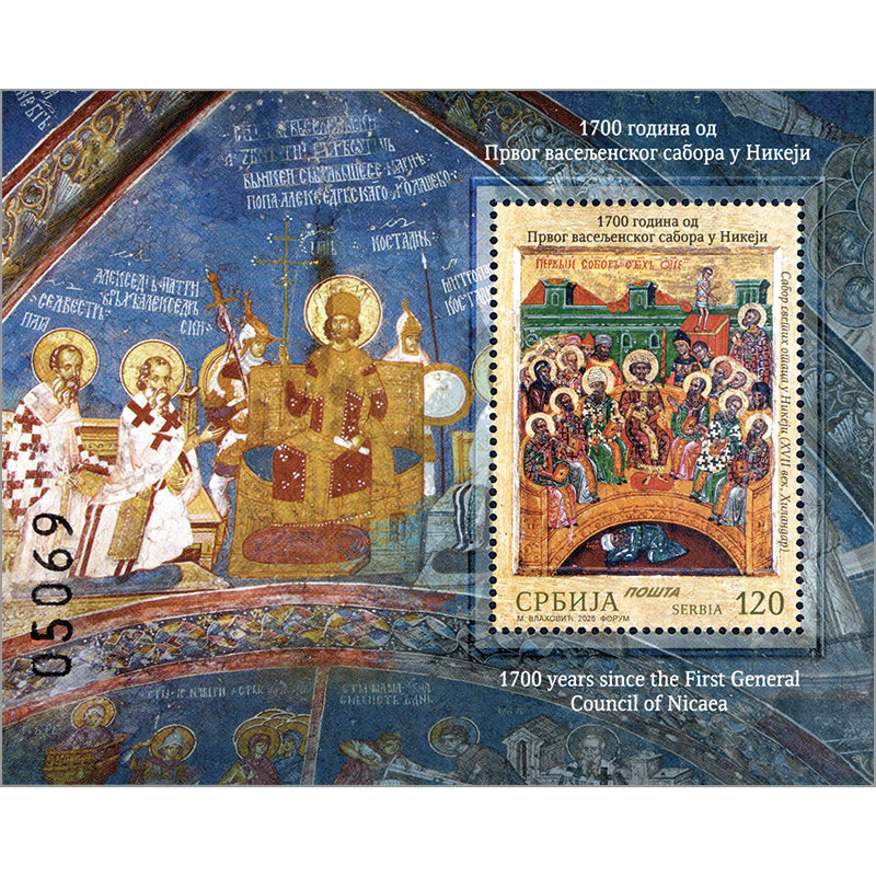 公会議を描くヒランダル修道院のイコン。シート地にデチャニ修道院のフレスコ画。