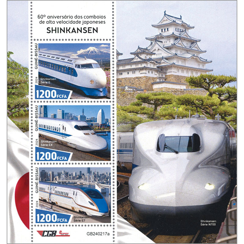 0系、700系、E7系。シート地にN700系、背景に姫路城。