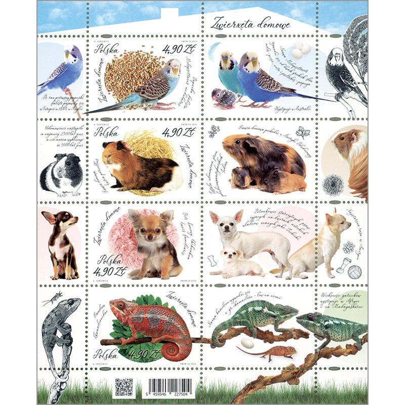 セキセイインコ、モルモット、チワワ、カメレオン。右側のタブにそれぞれの親子。
