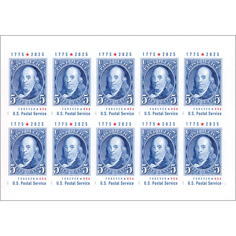 )から切り離したベンジャミン・フランクリン10枚を収めるセルフ糊ペーン。