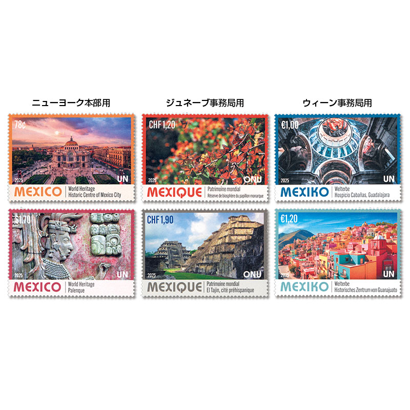 27次は、古代マヤ文明や、アステカ帝国発祥の地であるメキシコの文化遺産と自然遺産を描く。本部、事務局ごとに各2種ずつ発行。